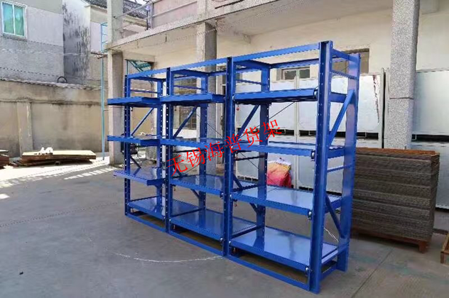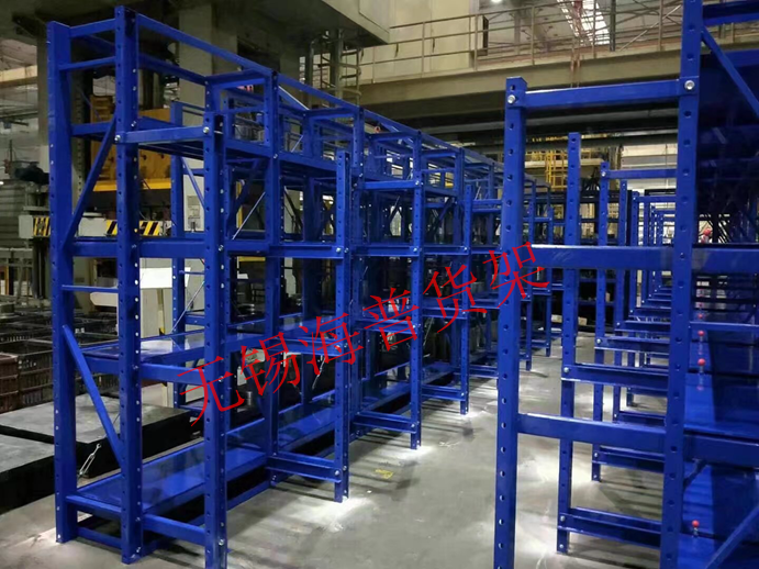 模具货架分为全抽式和半抽式模具货架,推荐使用全抽式模具货架,全抽式模具货架可以将抽屉完全打开,方便存放模具,全抽式模具货架承载比半抽式模具货架要大,标准的一层可以承载1500kg,基本满足客户要求。如客户厂房没有行吊,可在模具货架上安装起吊装置!见下图为我司现场案例: